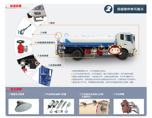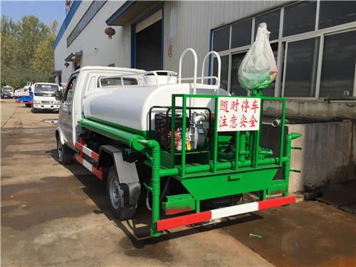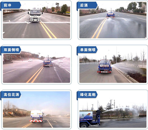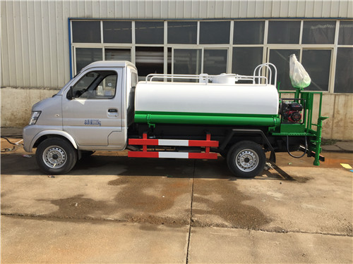 上裝配置:采用CH1035AQ24底盤改裝,水箱容積2立方,前沖后灑,側噴,罐體后帶工作平臺,平臺上安裝綠化灑水炮,灑水炮可全方位旋轉,可連續調成直沖狀、大雨、小雨、毛毛雨,帶安全護欄,罐體材質采用Q235碳鋼優質鋼板制作,罐體后部安裝汽油抽水泵,由抽水泵提供動力,泵可自吸自排,安裝過濾網。